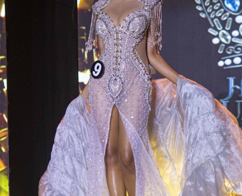 After a rather long break, where all VIPs, were greeted and sponsors mentioned (no event is possible without them), it was time for the 9 ladies to present themselves in evening gowns.